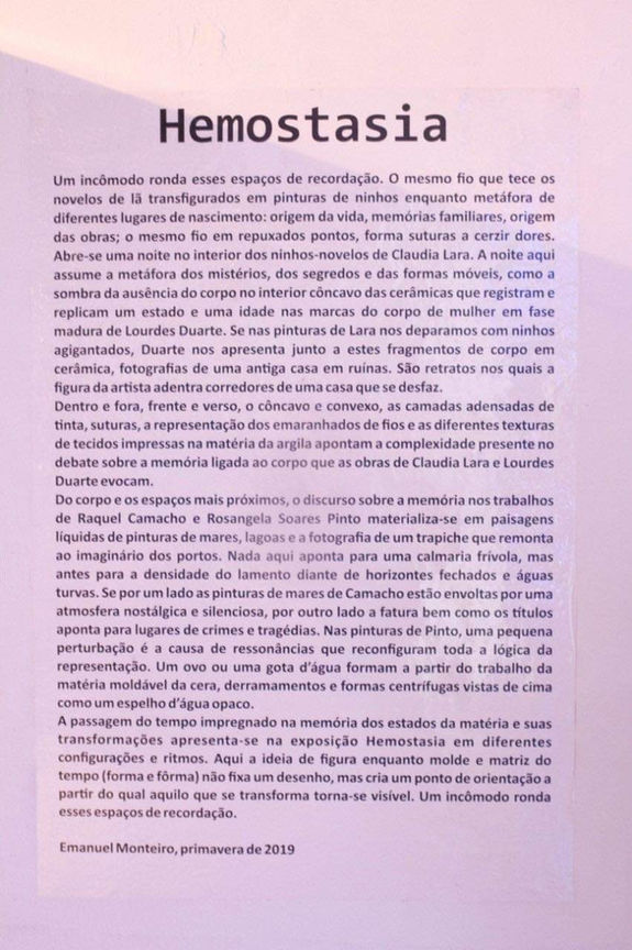 Group exhibition with Lourdes Duarte, Raquel Camacho and Rosangela Soares, curated by Emanuel Monteiro. Galeria do Parque das Ruinas, Santa Teresa, Rio de Janeiro. From November 5th to December 1st, 2019.